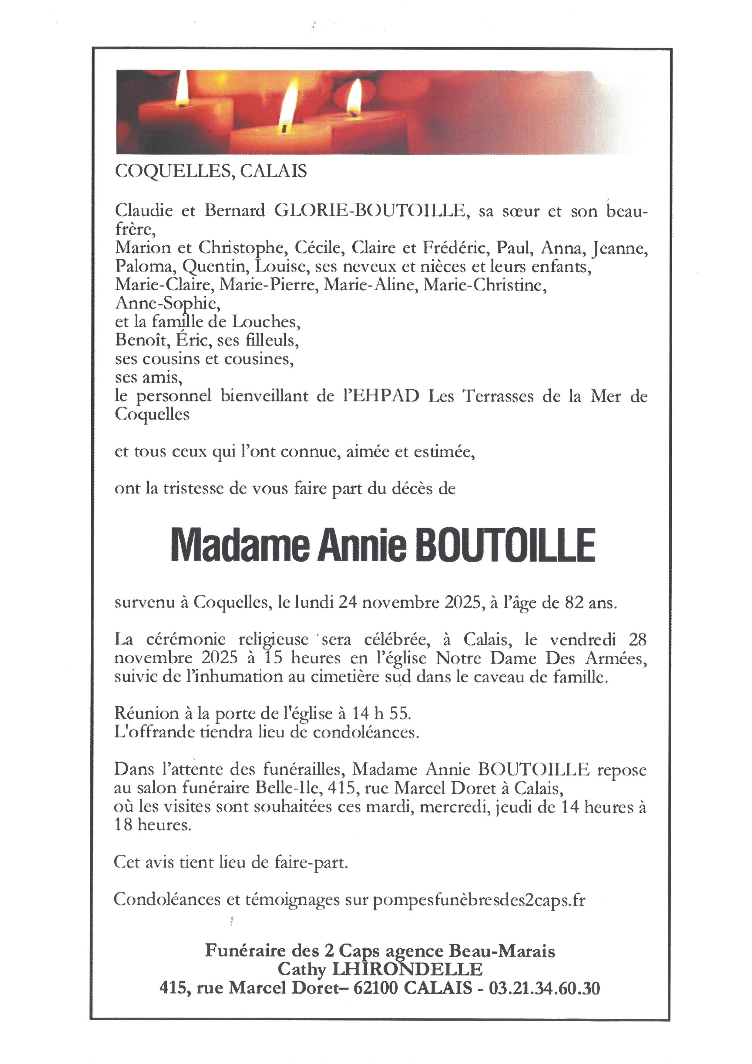 Déroulement des funérailles de Madame Annie BOUTOILLE