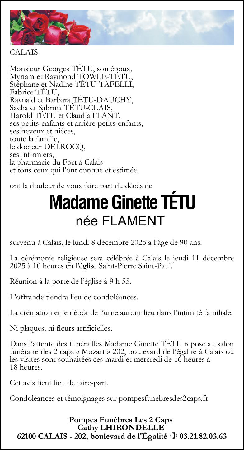 Cette page vous permet de présenter vos condoléances à la famille et de partager l'avis de décès de Ginette.