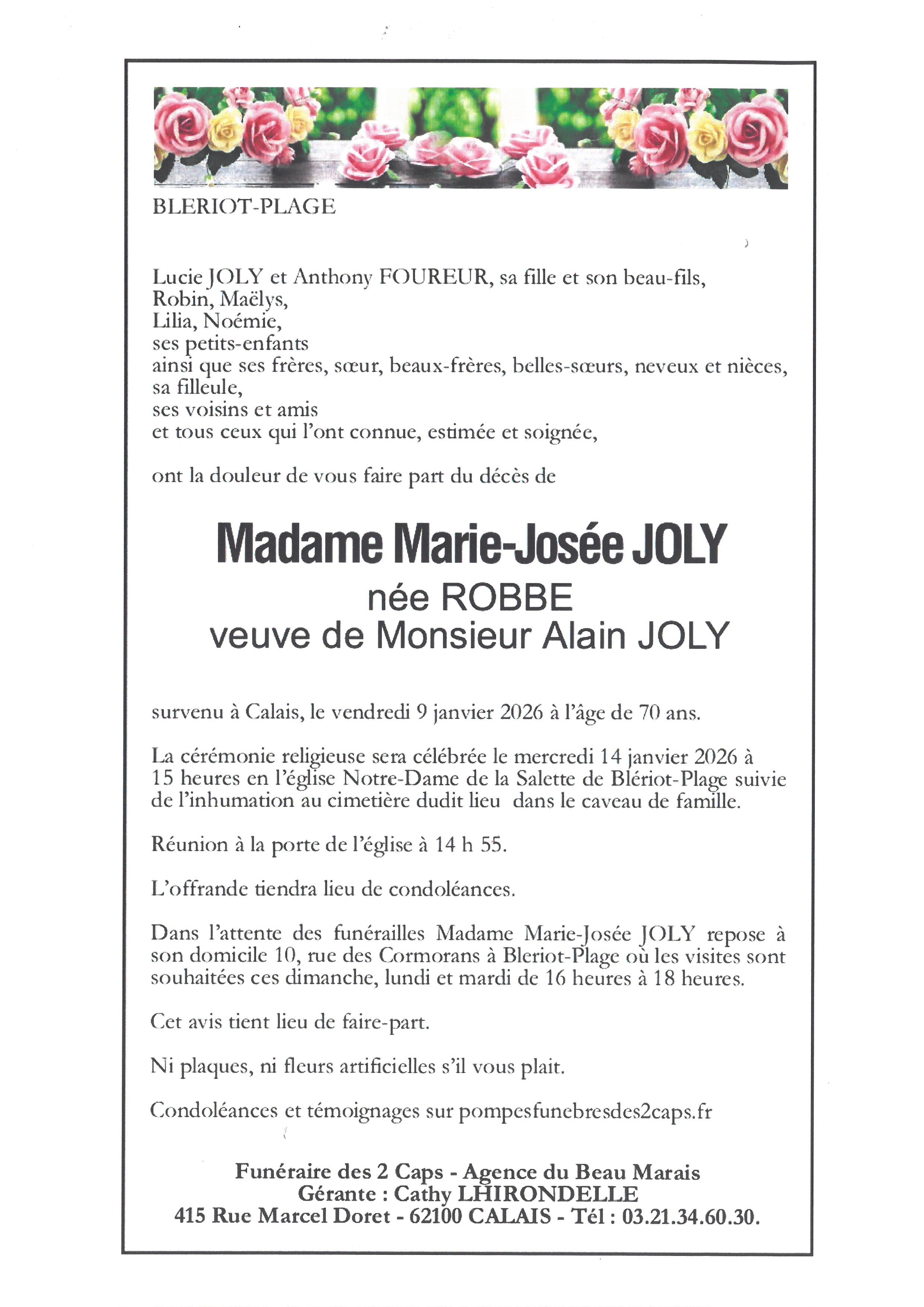 Avis de décès de Madame Marie-Josée JOLY née ROBBE
