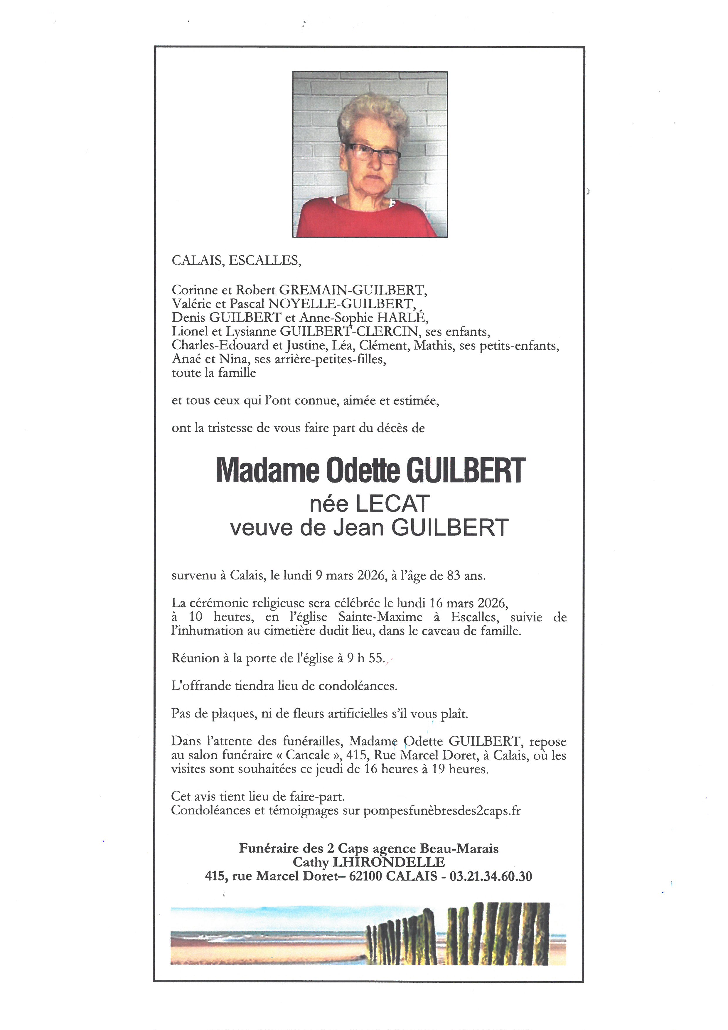 Avis de décès de Madame Odette GUILBERT