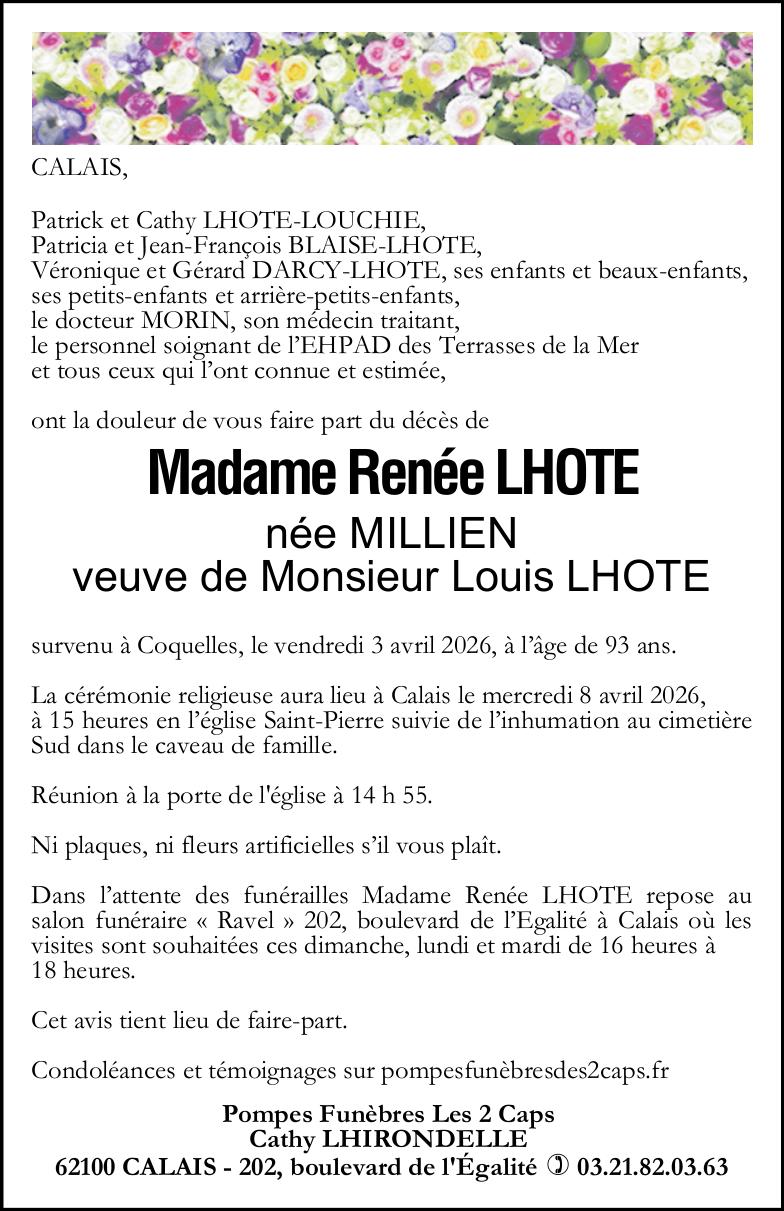 Avis de décès de Madame Renée LHOTE née MILLIEN