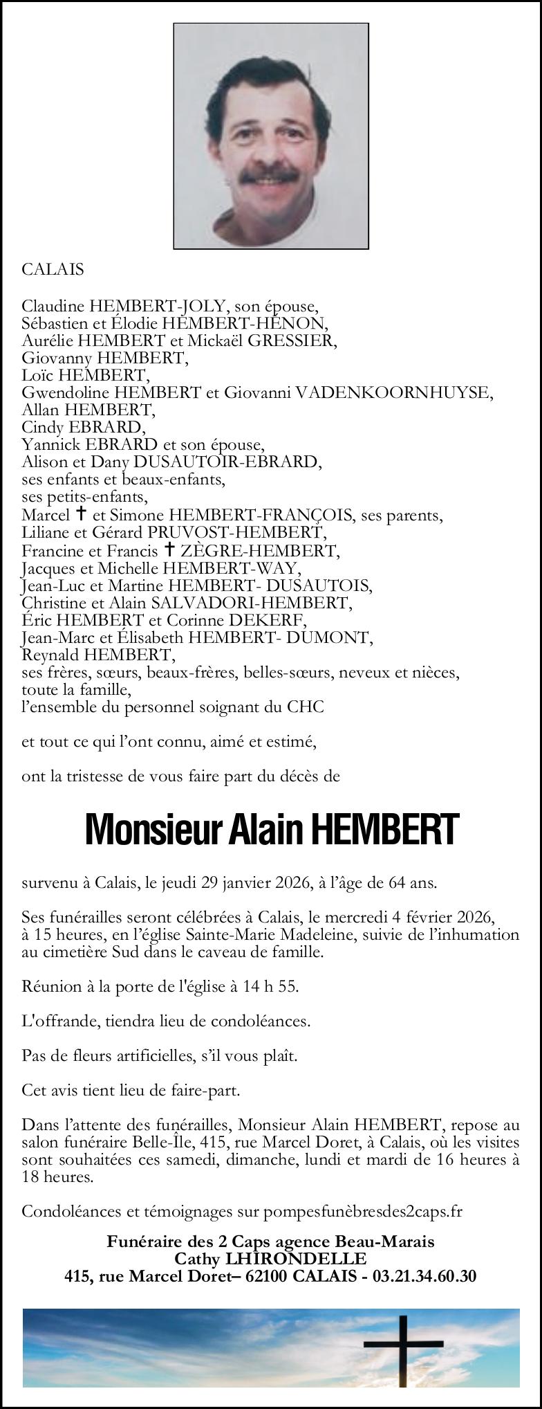 Déroulement des funérailles de Monsieur Alain HEMBERT