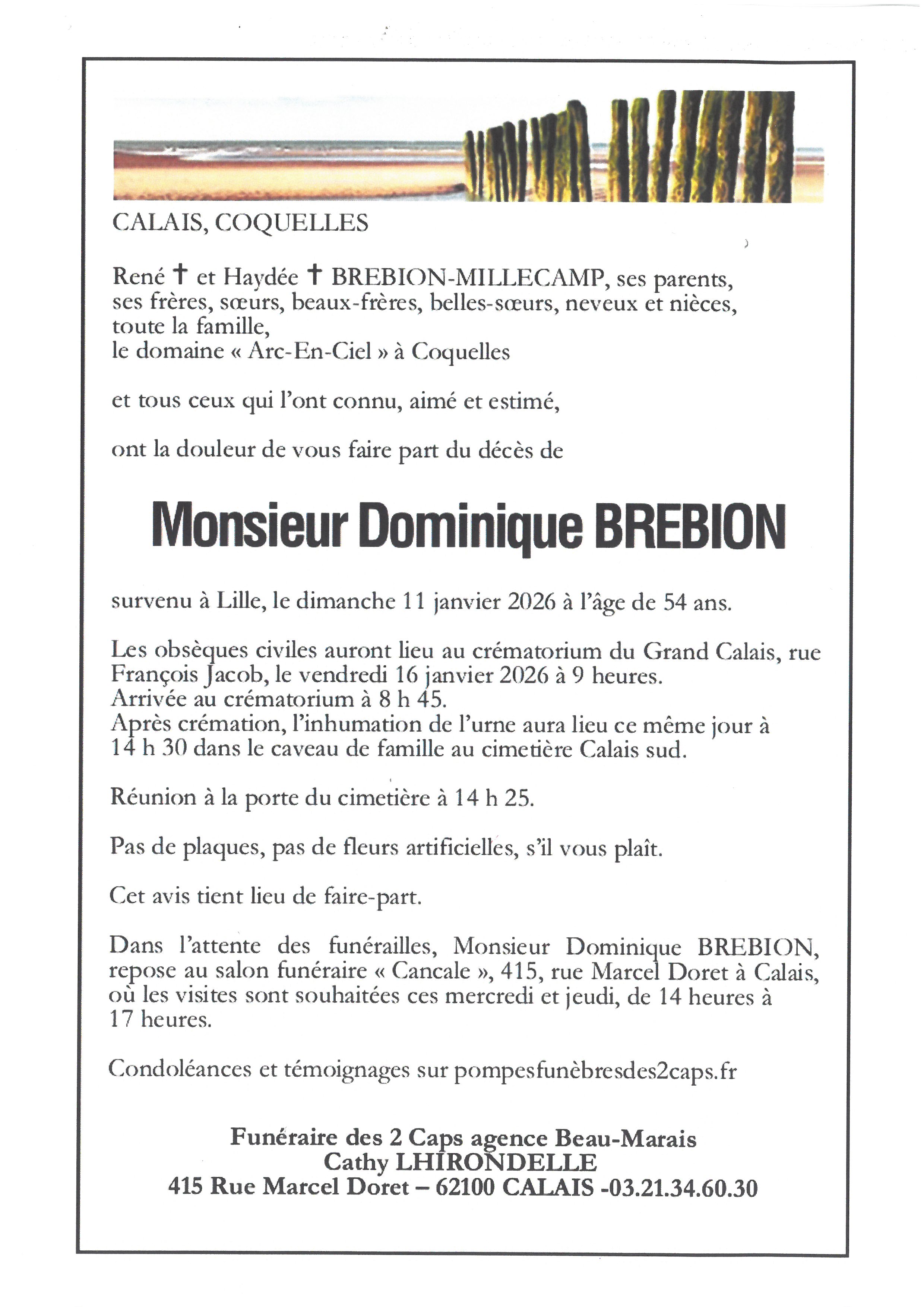 Avis de décès de Monsieur Dominique BREBION
