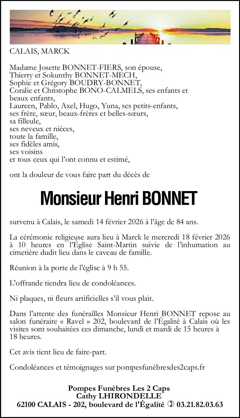 Avis de décès de Monsieur Henri BONNET
