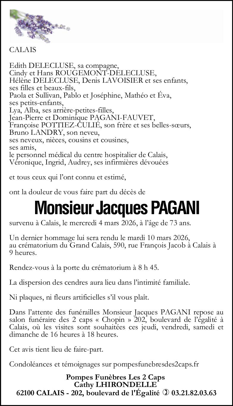 Cette page vous permet de présenter vos condoléances à la famille et de partager l'avis de décès de Jacques.