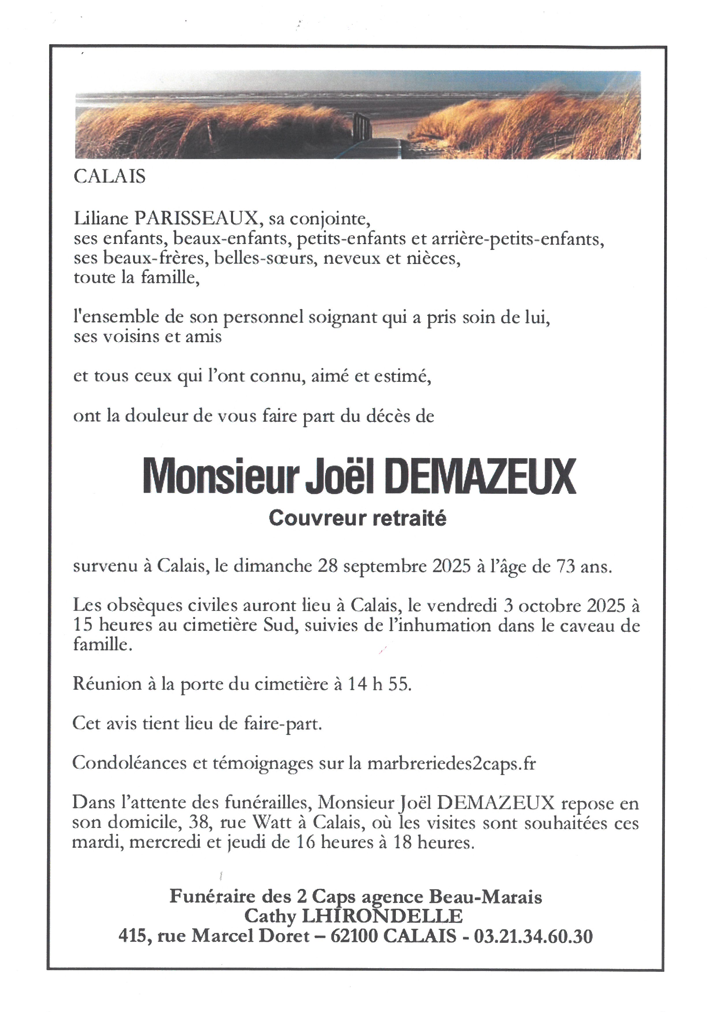 Déroulement des funérailles de Monsieur Joël DEMAZEUX