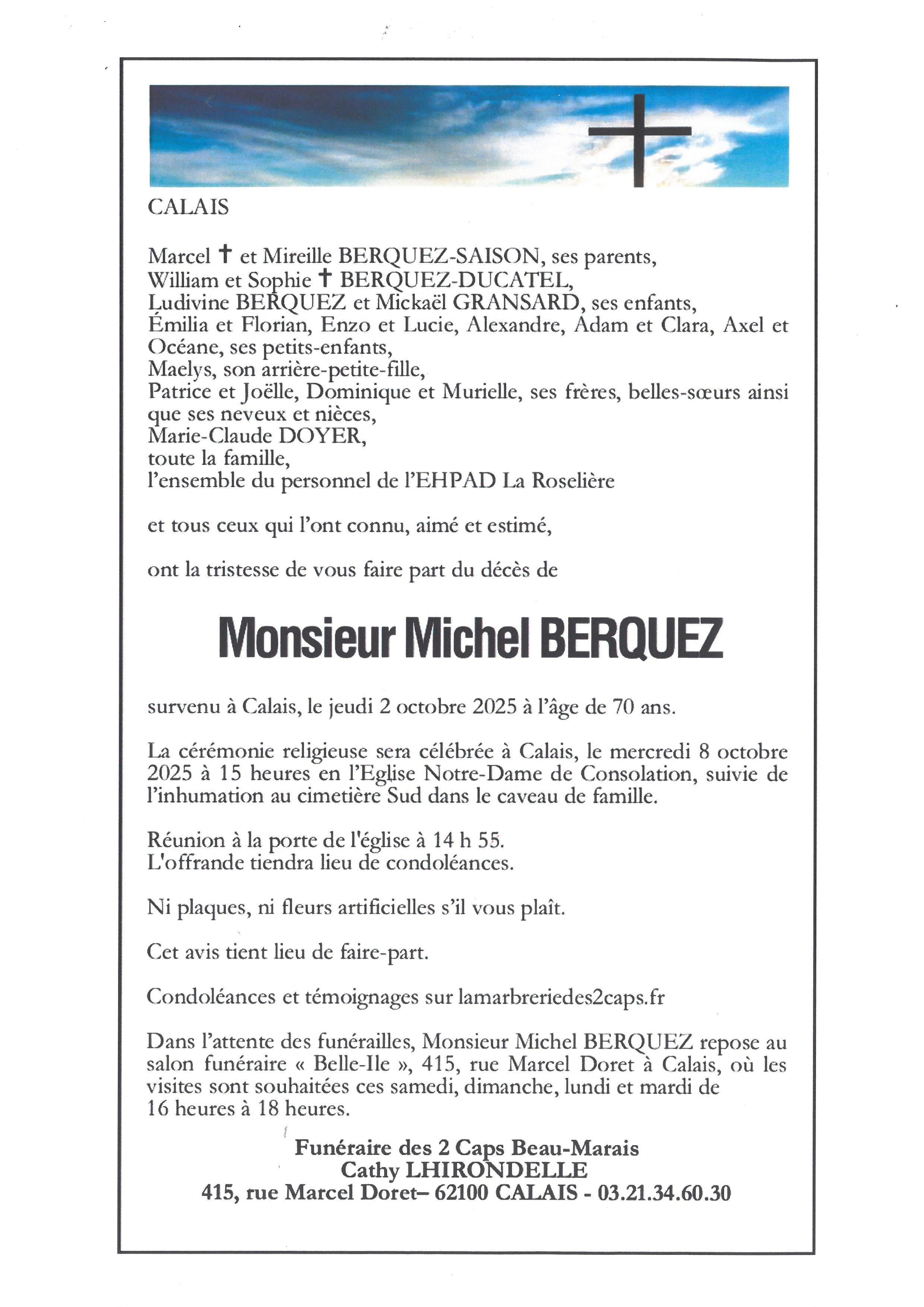 Déroulement des funérailles de Monsieur Michel BERQUEZ