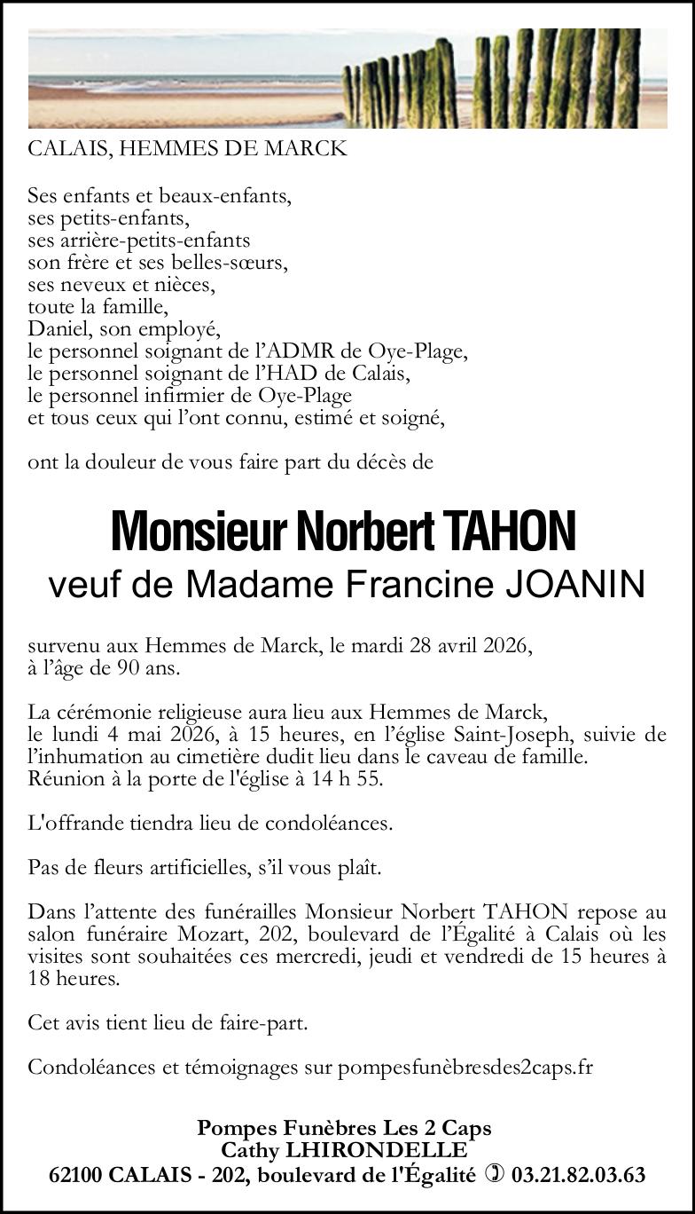 Déroulement des funérailles de Monsieur Norbert TAHON